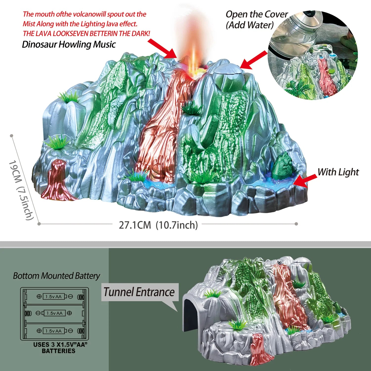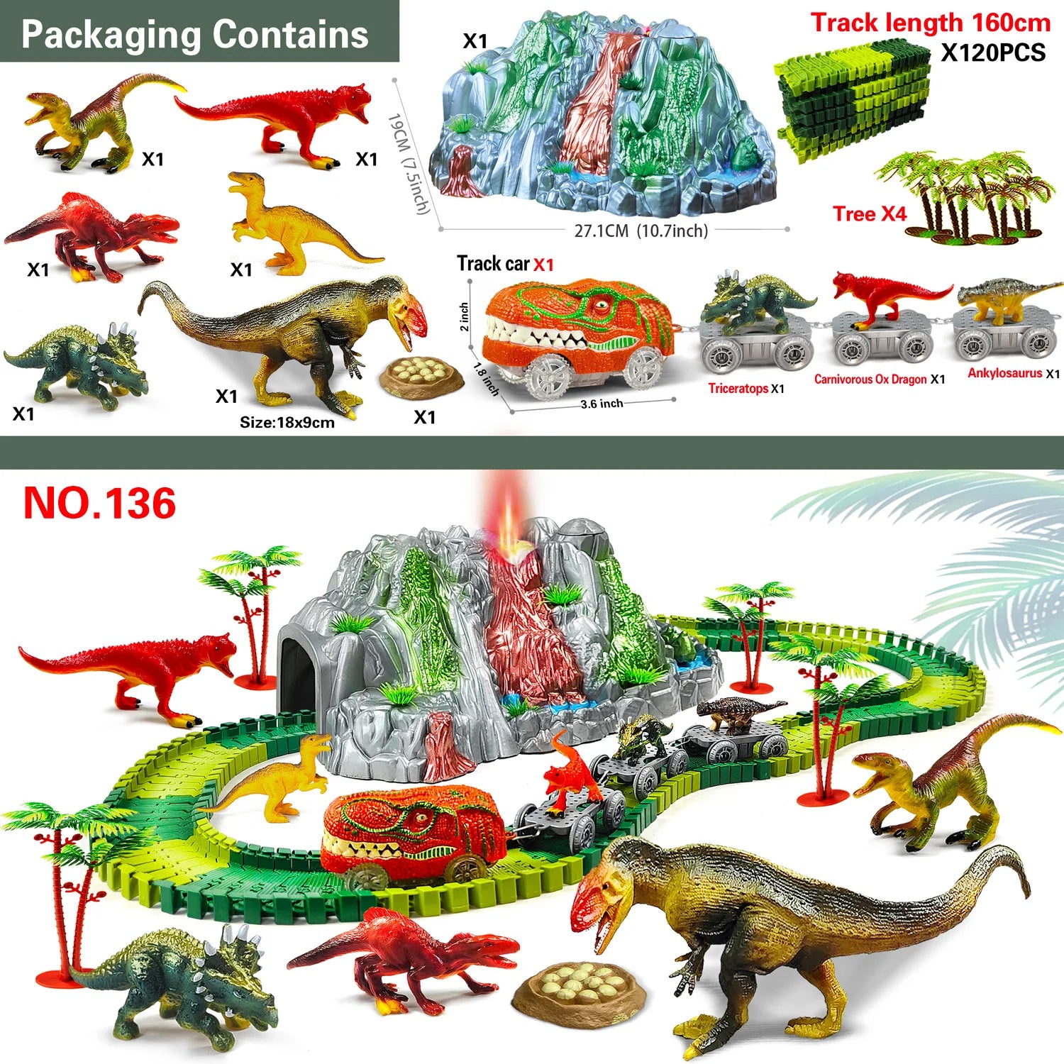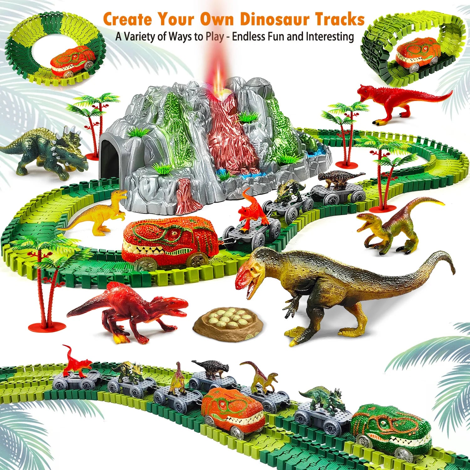 Dinosaur Track Set with Volcano and Train Cars, Age 3+